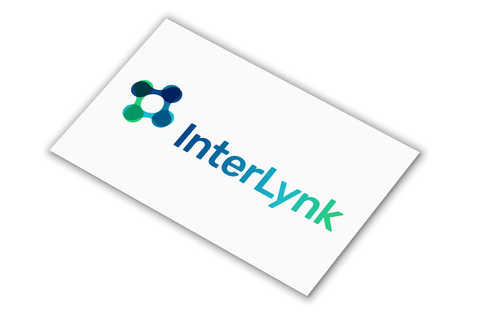 Biomaterials, shaped like molecules, are interlinked and layered end-to-end to form a tissue-like structure, represented by the InterLynk symbol.